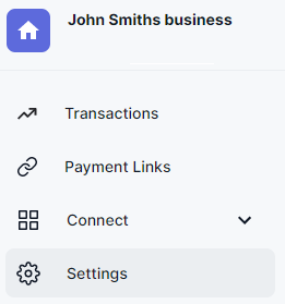The Settings section enables you to view your profile, business, account, settlement, and billing details. It also enables you to manage team members.