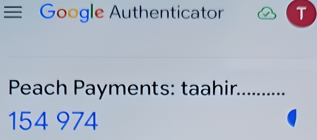 Each time you log in to the Peach Payments Dashboard, you must authenticate using the authentication code from your authenticator app.